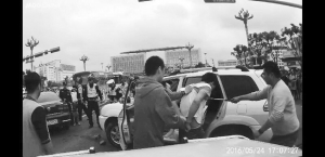 下午5点,消失近两小时的嫌疑车辆出现在环湖路上。民警悄然跟上,准备实施抓捕。5点半,嫌疑车辆来到北京路与永平路交叉路口时,前方正好有一起交通事故。随着下班的车辆越来越多,如果再拖将失去最佳的抓捕时机,见时机成熟,民警立即实施抓捕:一辆警车从后方快速逼近,另一辆就是视频中的白色越野车,其从右边冲上前,撞上了迈腾车的右前轮。可金某某并没有停车,而是继续加大油门,欲撞开白色越野车继续逃窜。幸亏白色越野车动力足,驾车民警死死顶住迈腾车,使其无法前行。其余民警下车围堵,打不开车门只好用甩棍砸车窗玻璃。而一位民警为防止发生意外,在旁持枪警戒。