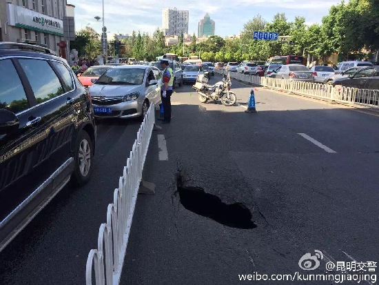 6686体育讯 8日上午,记者从昆明交警获悉,西昌路南向北云大医院对面路段,机动车道道路发生塌陷。辖区交警已封闭险情道路,三个车道只留有一个车道保持通行。受此影响,现在西昌路由南向北、大观路、新闻路、云大医院路段拥堵。目前,修复工作还在继续,险情还没有排除,请有条件的驾驶员避开拥挤路段通行。