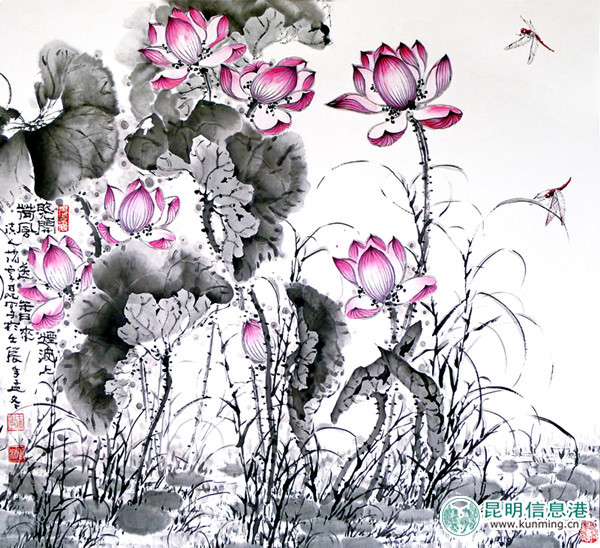 赵云昆绘画,只为喜欢、感知、关爱身边一草一虫、一花一木,他希望自己能用纸笔记写物象的存在,还原其生命的价值。他的画作是细致的、率性的、爽朗的、和谐的,更是意兴勃发的,极具富有诗意,情感充沛,正如他为自己的国画作品《水中清莲》题写:“诗情画意,息息相通。”画是有形的诗,诗是无形的画。诗与画所表现、传达出的意蕴都在于寄情于物。诗画吟情,此情此景的描绘,也是抒发作者内心的真实情感。如赵云昆所言,以情观景,方能写万物生意、笔抒画者之意趣。