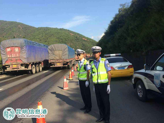 从21日下午4点开始,在昆楚交警的指挥下,一直到9月22日凌晨5点,所有滞留在安楚高速上的车辆才退出去。抢险期间,绕行通往彩云、长田收费站道路正常。大约有180多辆超长大货车无法在老320国道上通行,司机们自愿留在程家坝、楚雄服务区等待垮塌路段开通。