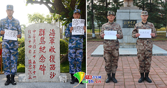 在永兴、石岛等岛屿驻防的“天涯哨兵”站在“西沙老龙头”向“北极哨兵”致敬。“亲爱的战友,我们相隔万里!”三沙如今已建设得十分美丽,永兴岛上的生活条件日益改善,引进先进技术,战士们现在每天都能吃上新鲜蔬菜。 (摄影:卢冠琼/邹德勇)