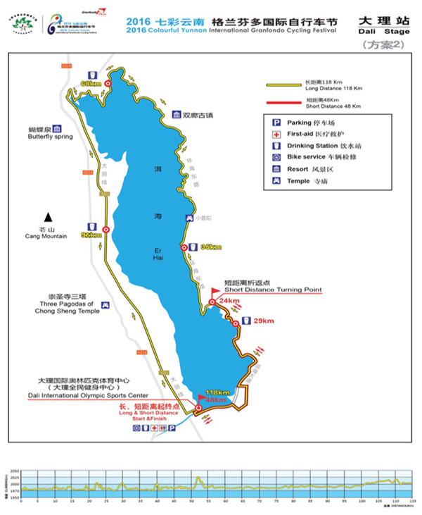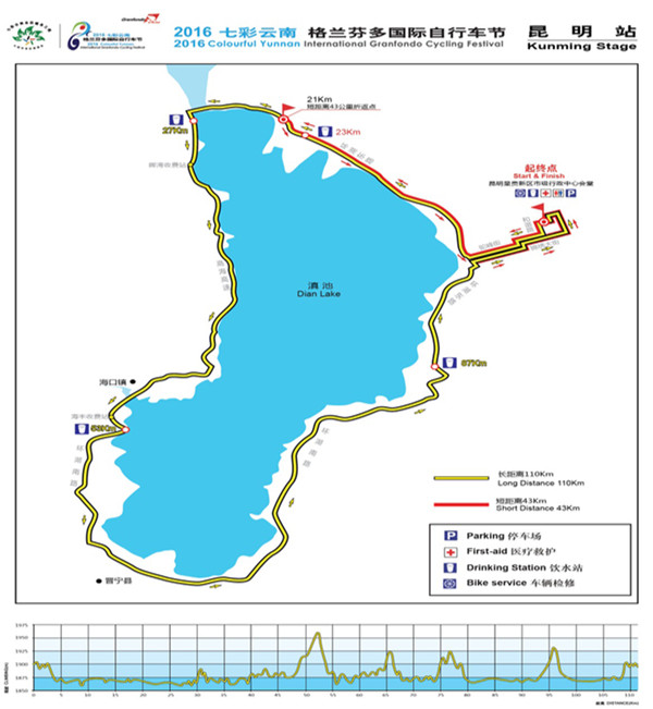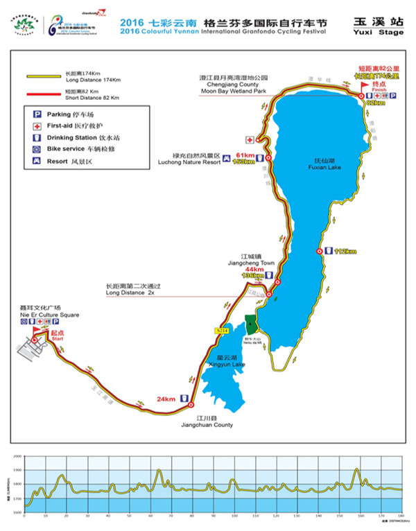 据悉,比赛开幕仪式将于11月6日上午在昆明市呈贡新区市级行政中心举行。此次自行车节赛程最长174公里,最短23.5公里。第一赛段赛程将在昆明滇池湖畔举行,全程110公里;第二赛段赛程在玉溪市进行,选手将途经聂耳文化广场、江川星云湖、野牛山,最后到达澄江抚仙湖月亮湾公园,全程174公里;第三赛段赛程为爬坡赛,将在楚雄州进行,由楚雄市彝人古镇出发至紫溪山,全程23.5公里;第四赛段在大理州进行,由大理市全民健身中心出发,经小普陀、双廊古镇等地,返回大理市全民健身中心,全长118公里;第五赛段赛程在丽江市进行,从丽江古城出发经丽江机场高速、束河路、玉峰寺等地,最终抵达玉龙雪山景区,全长101公里。