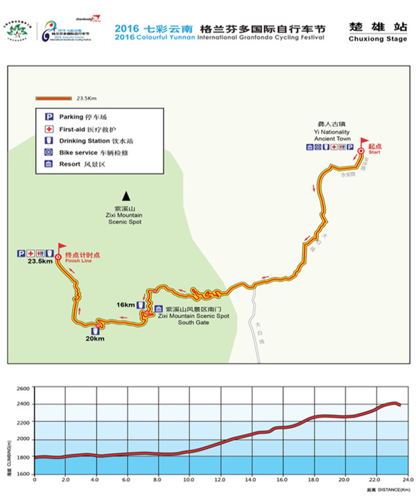 据云南省体育局消息,2016年第三届七彩云南格兰芬多国际自行车节将于11月6日—12日在云南举办,赛事总里程约530公里,将分昆明、玉溪、楚雄、大理、丽江5个赛段。