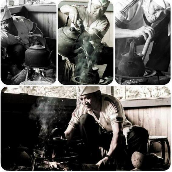 南康先生亲自烹煮炭烧普洱茶。遗憾的是,我们在山庄的这两天,有贵宾到达景迈山,南康先生有重要的接待任务,因此没能品尝到他亲手烧制的炭烧普洱茶,期待下次吧。(图片来自网络,摄影者:沂蒙老杆翟小锋)