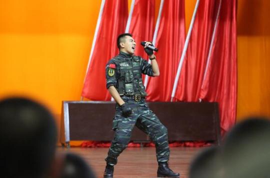 演出现场,身着戎装的阿振走上舞台,现场为战士们演唱了《兵心》、《兵魂》、《老兵新兵》等10余首原创歌曲,一首首军旅原创歌曲唱出了阿振对警营的眷恋和浓浓的橄榄绿情怀,更唱出了当代军人投身火热警营默默奉献的高尚情操。