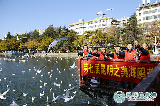 2010年的冬天,以爱鸥护鸥为使命的首届昆明之美海鸥节举行,志愿者通过宣传护鸥,买鸥粮喂鸥,倡导人与海鸥和谐相处,创造昆明之美。这次举行的第七届昆明之美海鸥节当日早8点志愿者顾中国、李厚基、艾庆玮、吴云生等志愿者集聚在翠湖公园九曲桥,开始喂海鸥。