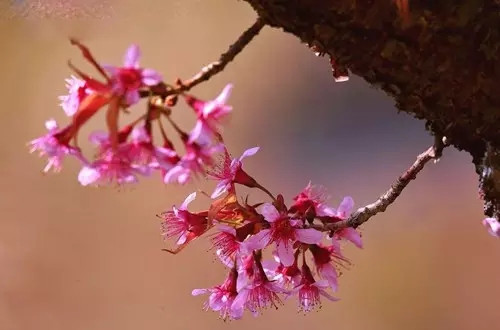冬樱花又名云南早樱,高约3-10米,树皮呈浅褐色,树枝较小呈绿色。冬樱花为蔷薇科樱属,因在冬天开花而得名。普通的樱花大多是在3月下旬至4月上旬开花,昆明的冬樱花花期则提前到了冬至前后。最佳观赏时间是开花后的3-8天,这时的花朵正值旺盛时节,花色鲜艳夺目、粉色宜人。