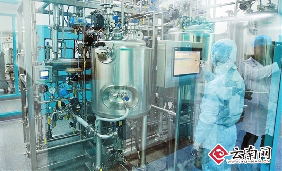近年来,玉溪市着力培育和发展生物医药产业,行业发展覆盖生物疫苗、生物制剂、中成药及中药饮片等6大类,拥有药品批准文号250多个,生产药品100多个。截至去年10月,玉溪规模以上生物医药企业实现产值17.3亿元。图为云南沃森生物技术股份有限公司生产线。(云报全媒体 记者 陈飞/摄)