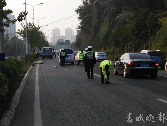8点半,记者赶到现场看到,事故地点位于西三环通往滇缅大道方向,距离滇缅大道路口几百米远。一辆微型车停放在内侧车道,在其左侧斜后方的绿化带边,死者被棉被盖着。由于交警仍在勘查现场,事故地点后方车辆已排起了长队。8点50分许,事故勘查完毕,死者被殡仪馆人员抬上车拉走,微型车被施救车拖离。