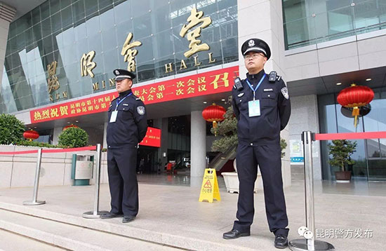 6686体育讯 记者合宇聪 3月18日、19日上午,伴随着庄严雄壮的国歌声,中国人民政治协商会议昆明市第十三届委员会第一次会议、昆明市第十四届人民代表大会第一次会议,分别在昆明会堂、昆明国际会展中心开幕。昆明市公安机关高度重视2017年市两会安保工作,成立了安保工作领导小组,严密安保工作方案,狠抓各项安全措施的落实,全体执勤民警认真履职、文明执勤、热情服务,全力开展警保卫工作,保障了市两会安全顺利开幕。