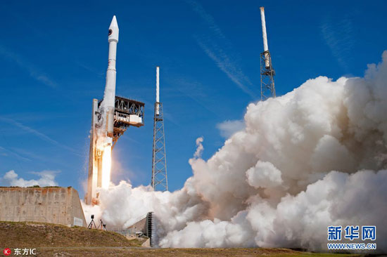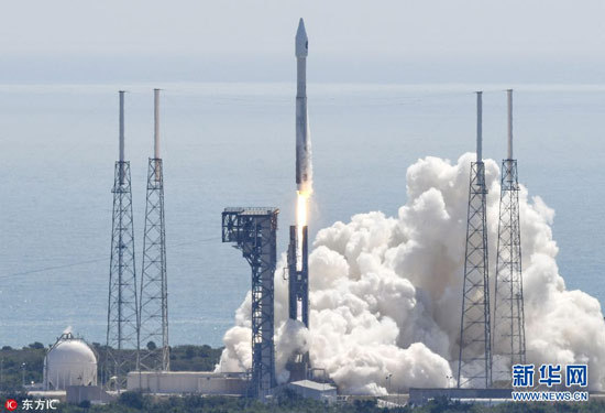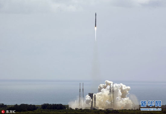 当地时间2017年4月18日,美国佛州卡纳维拉尔角空军基地,美国联合发射联盟公司的火箭搭载“天鹅座”货运飞船成功发射升空,将为国际空间站送去补给。(图片来源:东方IC)