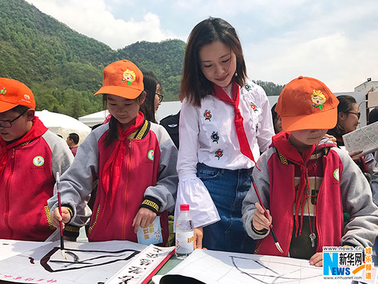 活动结束后,江一燕与学校的学生合影留念,陪伴孩子们度过了一个欢快难忘并充满意义的“世界读书日”。