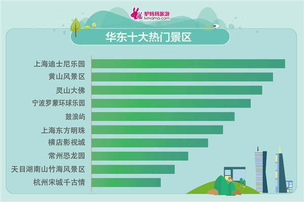 大众旅游时代,景区仍然是最热门的节假日出游目的地。《报告》显示,今年五一假期,驴妈妈平台上购买景区门票的人次量是去年同期的2.38倍,从家门口的公园到周边的山山水水、主题乐园,处处都是“人从众”。从驴妈妈订单来看,上海迪士尼乐园、黄山风景区、峨眉山、灵山大佛、广州长隆旅游度假区、天津欢乐谷、北京欢乐谷、宁波罗蒙环球乐园、鼓浪屿、成都大熊猫繁育研究基地位列全国热门景区Top10。