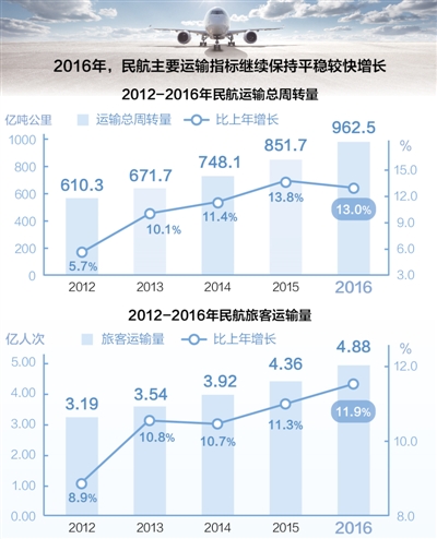 近日,中国民用航空局发布《2016年民航行业发展统计公报》。公报显示,2016年,在世界经济和贸易增速处于7年来最低水平、国内经济下行压力加大的情况下,民航主要运输指标继续保持平稳较快增长。这些指标的增长体现了民航发展哪些亮点,增长动力来自哪里,增速结构有哪些变化?记者采访了民航科学技术研究院民航局统计中心副主任齐险峰。