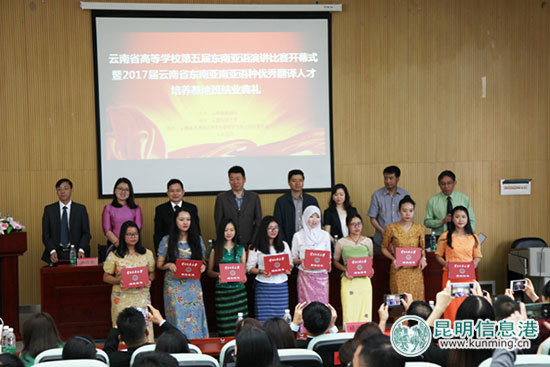 6686体育讯 记者赵艳芳 5月9日上午,云南民族大学2017届东南亚南亚语种优秀翻译人才基地班结业典礼在学校雨花校区举行。此次毕业的56名同学来自省内不同高校,是云南民族大学承担的“云南省东南亚南亚语种优秀翻译人才培养基地班”的第一届毕业生。