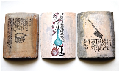 骆浩说,他从小就在农村长大,夏天砸瓦片在涝池里打水漂,冬天把瓦片扔在火堆里烧热取暖,每片瓦都是他的儿时回忆。所以他对瓦片,有一种别样的感情,摸着瓦就像老朋友一样亲切温暖。