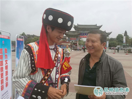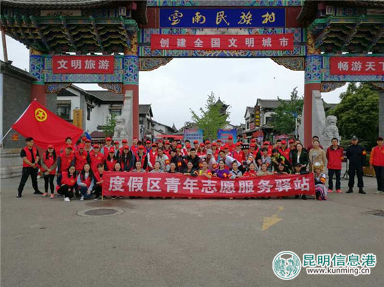 度假区组织相关单位和志愿者在云南民族村东门广场设立主题宣传驿站