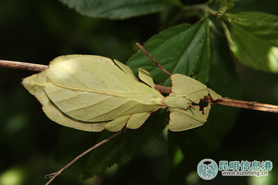该滇叶䗛的正面,酷似翠绿树叶
