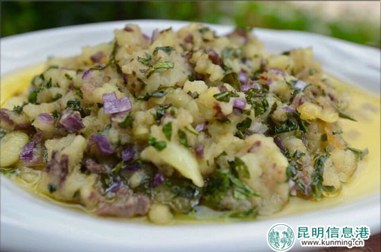 6686体育讯(都市时报 记者熊少宇 李秋霞 刘光华)凉拌洋芋、炸洋芋、蒸洋芋、煮洋芋......作为洋芋种植大县,寻甸县大部分人都爱吃洋芋,对洋芋的吃法也很有研究。作为近两年来,在云南人文自驾游活动中创新开发出的菜品,“洋芋全席”已受到游客欢迎。其系列菜品之一“六哨洋芋土八碗”,风味独特,配菜烹制时,哪种洋芋配哪种菜、怎样烹饪才好吃,有特别地讲究。