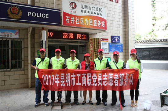 6月3上午,在市政协副主席、市工商联主席董林的带领下,市工商联志愿者服务队深入官渡区吴井街道石井社区开展志愿者服务活动,参与社区卫生清扫工作。
