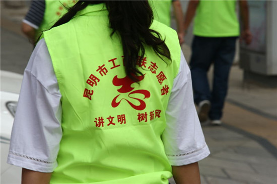 为深入推进昆明市创建全国文明城市工作,积极开展志愿者活动,共同营造“人人参与、人人奉献、人人快乐”的创建氛围。