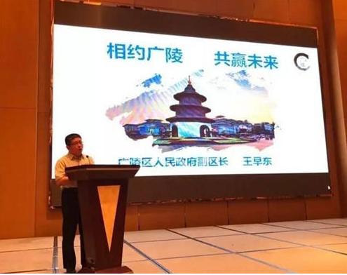 由于世界运河历史文化城市合作组织位于广陵新城,6月3日,在wcco向全国一带一路沿线网络媒体推广的现场,广陵区副区长王早东,也向与会媒体借势推广了广陵新城。