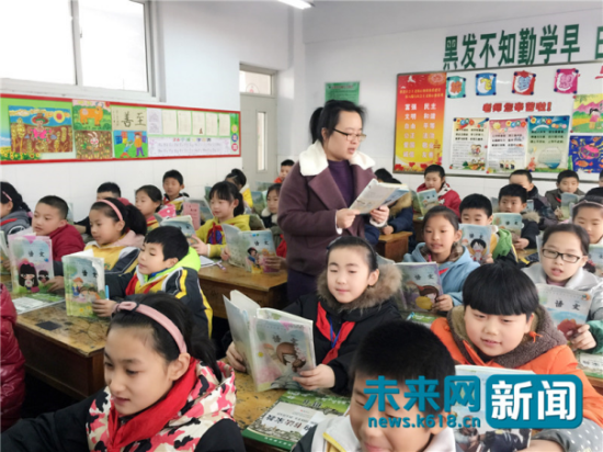 全国向上向善好青年、山东省枣庄市市中区实验小学老师张小琛在给学生们上课。 受访者供图