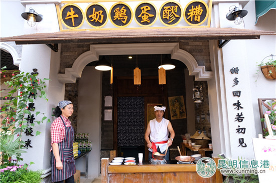 100余间店铺,为大众展示了一个浓缩版的民国老昆明。制作糍粑的捶打声、店里伙计的吆喝声、游客的嬉笑声……在街上此起彼伏。满口回忆杀的吹灰点心、独具新意的七彩云南花饺、传承三代人的手工卷粉、云南十九怪的倘塘黄豆腐、风靡于上世纪80年代的油糍粑、出镜《舌尖上的中国》的牛奶鸡蛋醪糟……数百种的民间小吃让游客嘴巴一刻不得停。