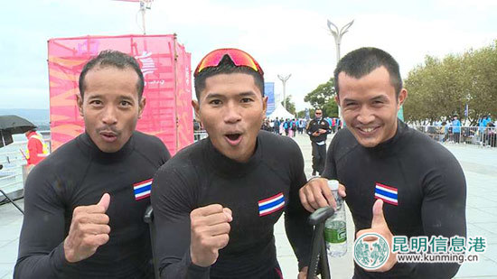 对于昆明的高海拔,David Freitag显得并不担忧:“平时都在山上训练,海拔和昆明差不多高。五天前我们抵达昆明,很快就适应了这里的海拔、气候和水域。”