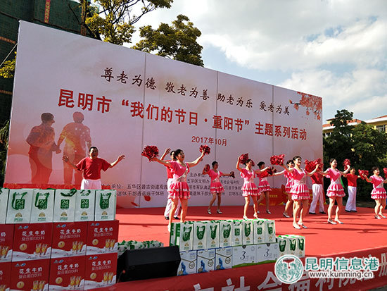 本次活动在一场精彩的舞狮表演中开始,学生志愿者们先后带来了精彩的小品、舞蹈、歌唱及诗朗诵表演,同学们用天真的笑脸和欢快的舞蹈感染着现场的每一位老人。昆明本地的歌唱家们也登台献唱,用歌声给老人们送上祝福。
