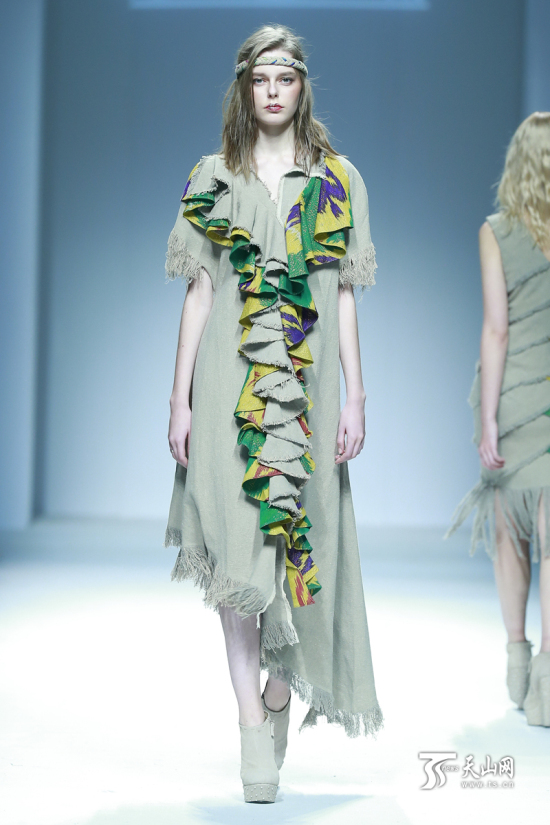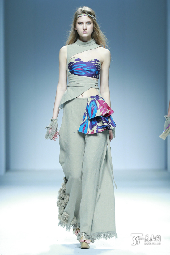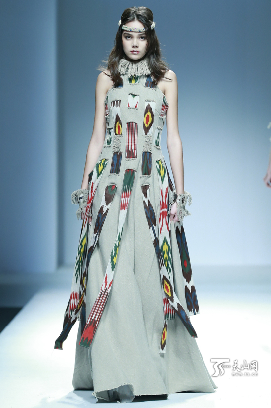当天,三位全国十佳服装设计师孙秀琴、程应奋、陶陶,以及新疆设计师迪拉娜 · 扎克尔凭借对艾德莱斯的专注研究创作,带来了一系列融合设计与市场、民族与世界的原创作品。在模特的演绎下,走出天山的艾德莱斯时装为本届中国国际时装周带来了美丽生动的新疆表情。