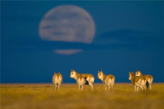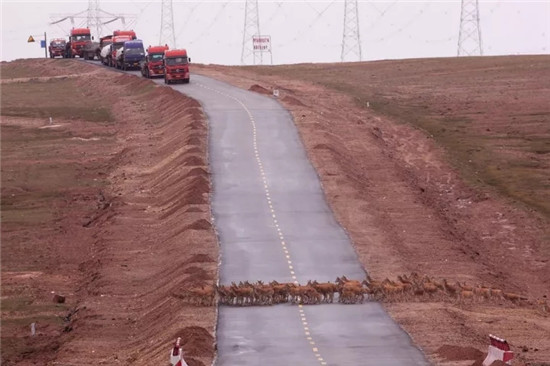 藏羚羊保育逐渐成功,车辆让藏羚羊通过。摄影:奚志农(本照片不适用CC 共创授权)