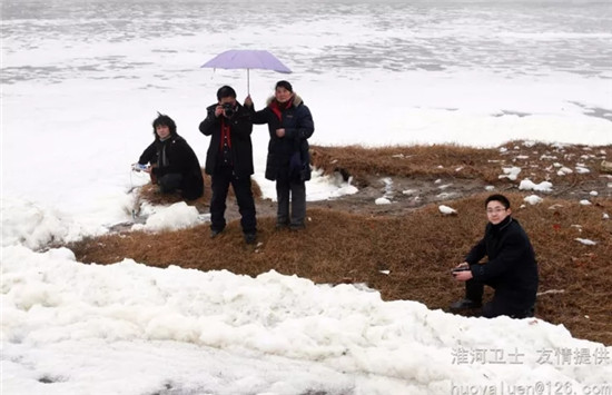 淮河水上的白色泡沫污染。霍岱珊提供(不适用CC 共创授权)