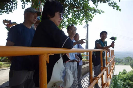 霍岱珊、奚志农、吕植三位中国环保人物,在台南社区大学讲师晁瑞光带领下,陪同到台南龙崎参访,由牛埔里里长陈永和分享拥有特殊地质景观的龙崎面对的掩埋场争议。摄影:陈宣竹。