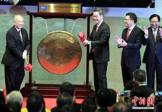 资料图:2014年11月17日,香港交易及结算有限公司(香港交易所)举行“沪港通”开通仪式。中新社发(洪少葵 摄)