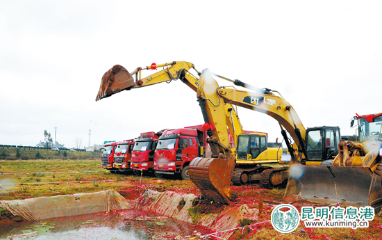 昨日,昆玉高速富有立交改扩建项目正式开工。记者黄晓松/摄