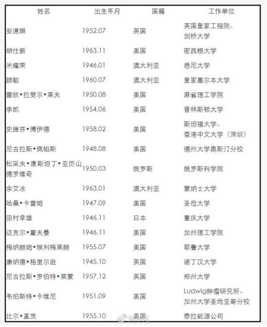 新当选院士中,来自高等院校的有31人,占46.2%;研究院所18人,占26.9%;企业及医院18人,占26.9%。