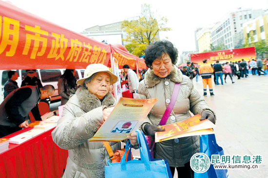 昨日,西山区在碧鸡文化广场设集中宣传点,拉开了西山区“宪法宣传月”系列活动的序幕。