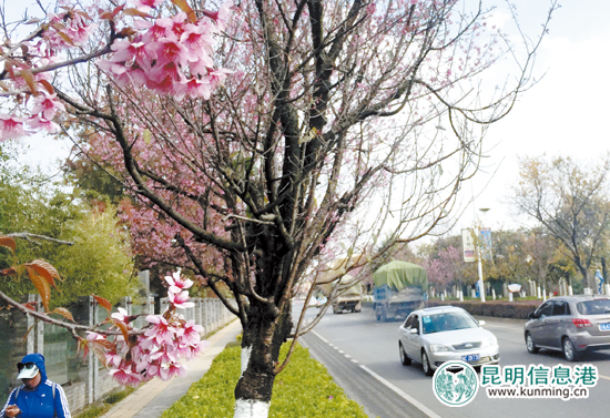 “昆明街头的冬樱花开花了,一片一片真美。”最近,不少细心的市民发现,在红塔西路长达1.9公里的道路两侧,600余株冬樱花已经陆续开放。这些冬樱花树的树龄都超过20年,每当冬樱花盛开,一树一树繁花似锦,一枝一枝花团锦簇,美不胜收。6686体育讯(昆明日报 记者赵伟/摄)