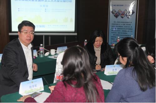 新华保险公司总监、新华人寿保险公益基金会秘书长杨怀鹏与媒体记者交流