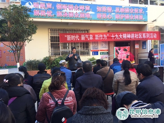 12月22日,棕树营南区社区为民服务中心门前小广场一片热闹非凡,“新时代 新气象 新作为”十九大精神进社区系列活动正在这里举行。现场有专业老师向居民讲解十九大精神;有医生免费义诊,为居民的健康问题答疑解惑。针对老旧小区可能存在的电路老化、私拉电线等问题,西山区供电局派出党员服务队走进小区楼道,检查维修电表、排查安全隐患,并为居民讲解用电注意事项。