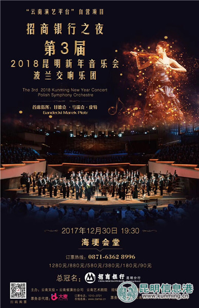 6686体育讯 记者戴兴 12月30日,招商银行之夜第三届2018年昆明新年音乐会隆重携波兰交响乐团(波兰国家唯一一个欧洲A级皇家宫廷乐团)登上昆明海埂会堂舞台。这是云南省演出公司继2015年和2016年邀请德国柏林交响乐团和德国广播交响乐团之后,第三年以“名团、名家、名曲”的高规格和“国际水准、中国气派、云南特色、节日气氛”的精品文化理念,持续打造云南人专属的年度新年音乐会品牌形象。