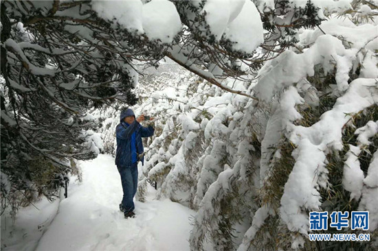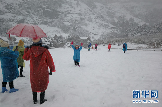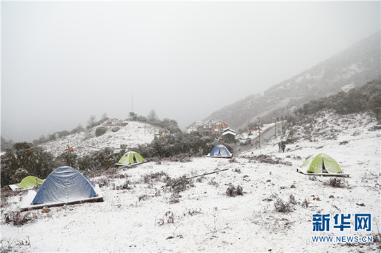 随着冷空气来袭,昆明气温骤降,2018年1月2日17时,昆明轿子山迎来新年第一场雪。截至1月3日10时30分,大雪还在持续,最深积雪深度超过40厘米。据了解,轿子山相对高差达到3400米以上,拥有寒、温、热立体气候,具有“一山分四季,四季景迥异”的奇异景观,在这里可以冬春游冰瀑,茫茫雪原;夏赏万亩杜鹃花,30里花溪,高山草甸花海;秋观高山天池瀑布群,云海仙境。(张翼鹏)