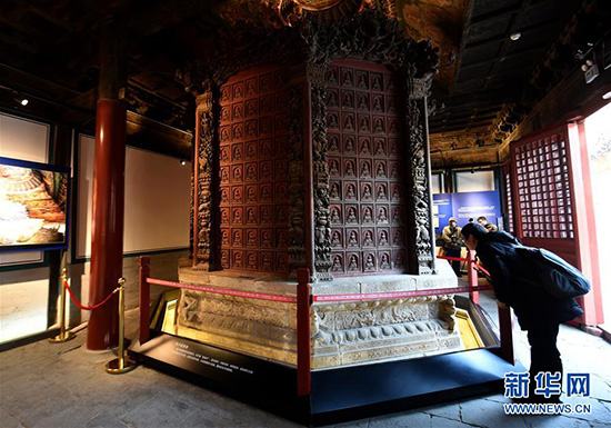 当日,闭馆改造半年的北京文博交流馆重新开馆,并将于1月19日起正式对外开放,开放时间为每周二至周日。据介绍,重开后的文博交流馆照明条件有了很大改善,今后将不定期举办更多夜间博物馆活动。北京文博交流馆于1992年成立,馆址为已有500多年历史的智化寺。新华社记者 罗晓光 摄