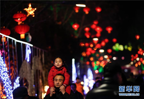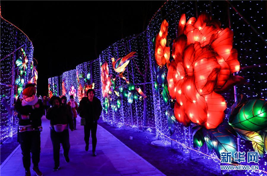 正月初一,北京市丰台区王佐镇南宫景区开启春节灯光秀,题材各异、造型多样的彩灯为游客呈现一场视觉盛宴。(新华社记者 张晨 摄)