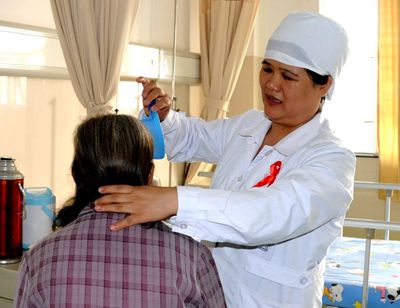 全国三八红旗手标兵、广西壮族自治区南宁市第四人民医院艾滋病科护士长杜丽群(图片由全国妇联提供)