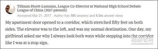 这名网友说来中国前,自己在楼道里,有左右看的习惯