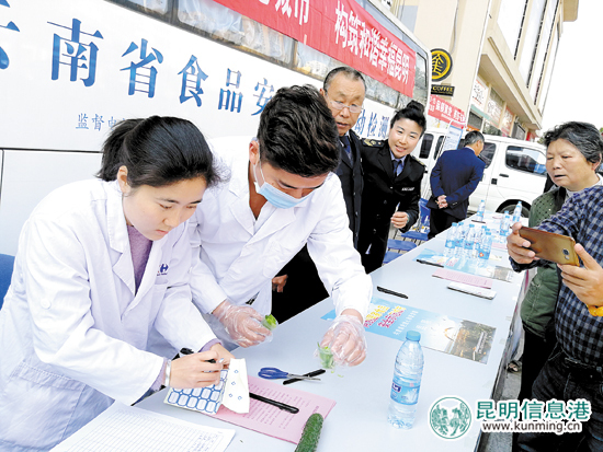 6686体育讯(昆明日报 记者徐婕) 为不断提高群众对昆明市食品安全的满意度以及市民对创建国家食品安全示范城市工作的参与度和获得感,充分发挥社会公众的参与和监督作用,昨日,3·15食品安全“你点我检”活动在云纺举办。市民拿着蔬菜、水果前来免费检测,现场就能得知蔬果是否有农药残留。