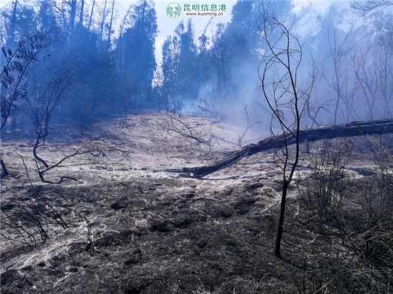 昆明市森林防火指挥部要求经开区留有足够人员看守、再清理火场,防止复燃。
