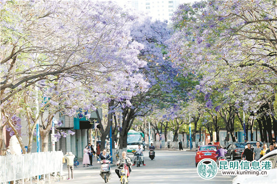 6686体育讯(昆明日报 记者李海曦摄影报道)又到蓝花楹盛开的季节,昆明首条蓝花楹大道教场中路呈现一片紫蓝色的盛景。树木高大,绽放着的花朵相连形成紫蓝色的“隧道”,穿行其中,市民和游客感觉清雅脱俗、美丽浪漫。蓝花楹已成为昆明春末初夏一道美丽的城市风景,体现春城花都的魅力。正值“五一”假期,蓝花楹的盛开吸引许多人驻足拍照。